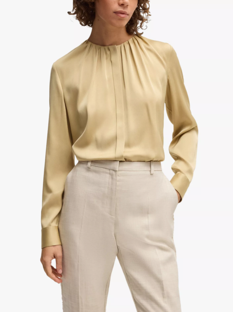 This Silk Rich Top from Hugo BOSS is a refined and elegant addition to your wardrobe, designed to blend seamlessly with your existing pieces.
