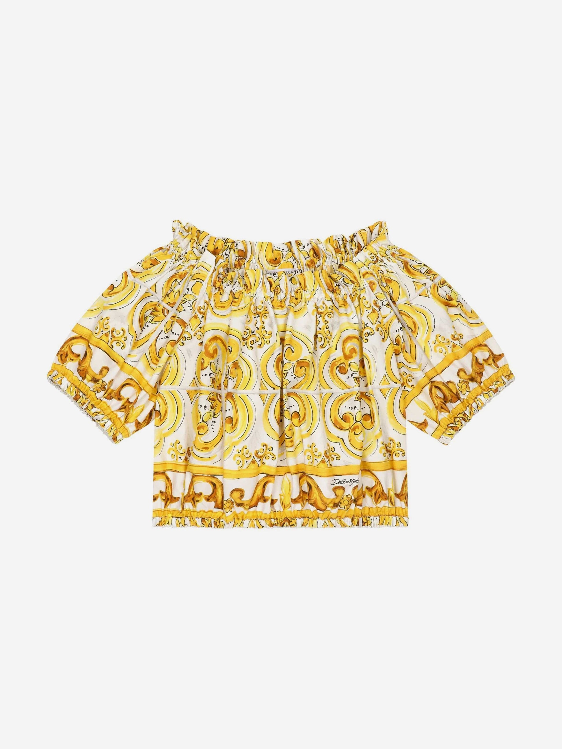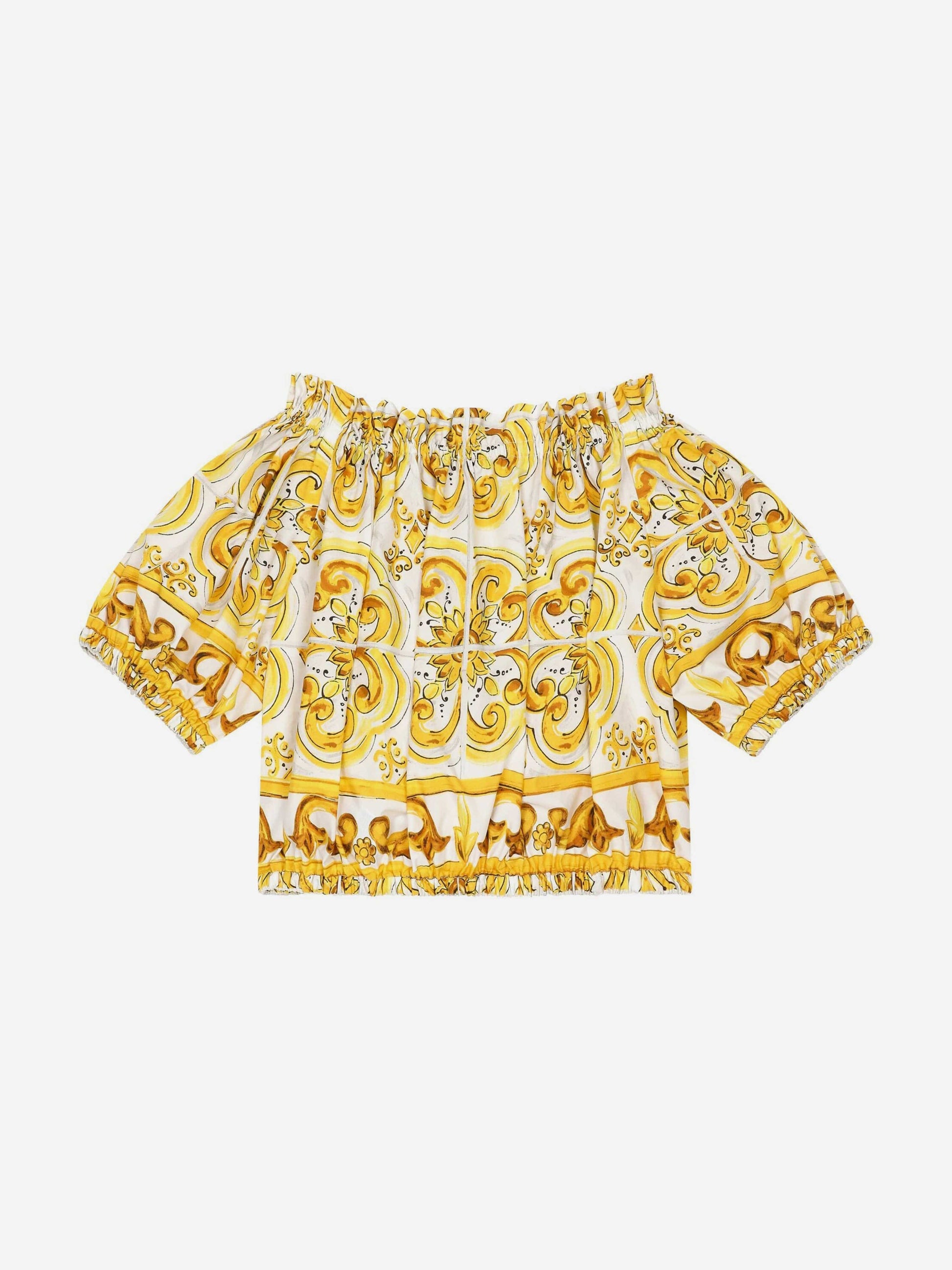This blouse is nothing short of a work of art. It features a unique Majolica print, inspired by traditional Sicilian pottery, that will make your little girl stand out in a sea of boring outfits.