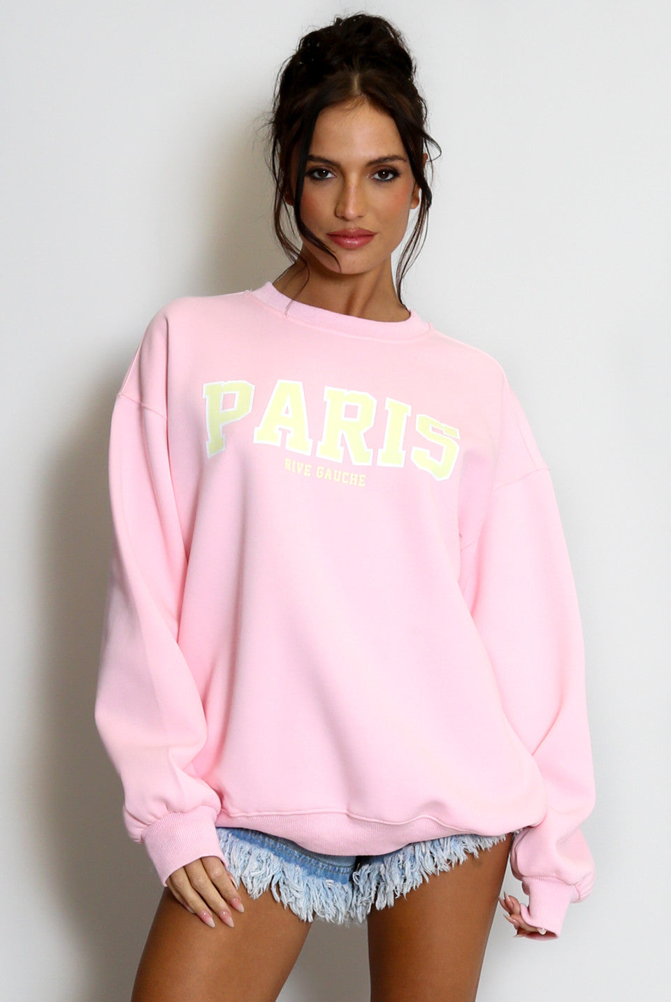 Give your casual wardrobe a fun upgrade with this adorable sweatshirt showcasing a playful 'Paris' slogan print, ideal for anyone dreaming of city escapes! It offers cozy fabric and a timeless crew neck, finished with snug cuffed sleeves. Pair it with the matching joggers for the perfect laid-back look.