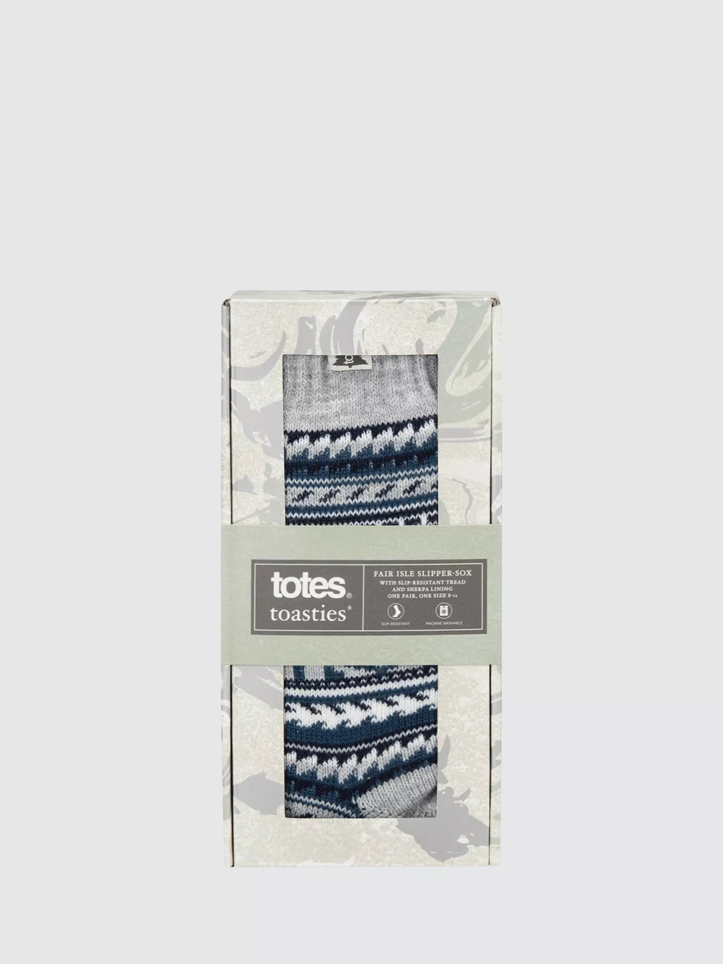 These classic, knitted slipper socks feature a Fair Isle pattern and a soft sherpa lining to provide long lasting comfort.